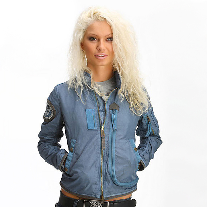 Отделка Куртка с воротником-стойка Длинные рукава с манжетами Застежка на молнии Прорезные карманы на полочке Аппликация на рукаве
