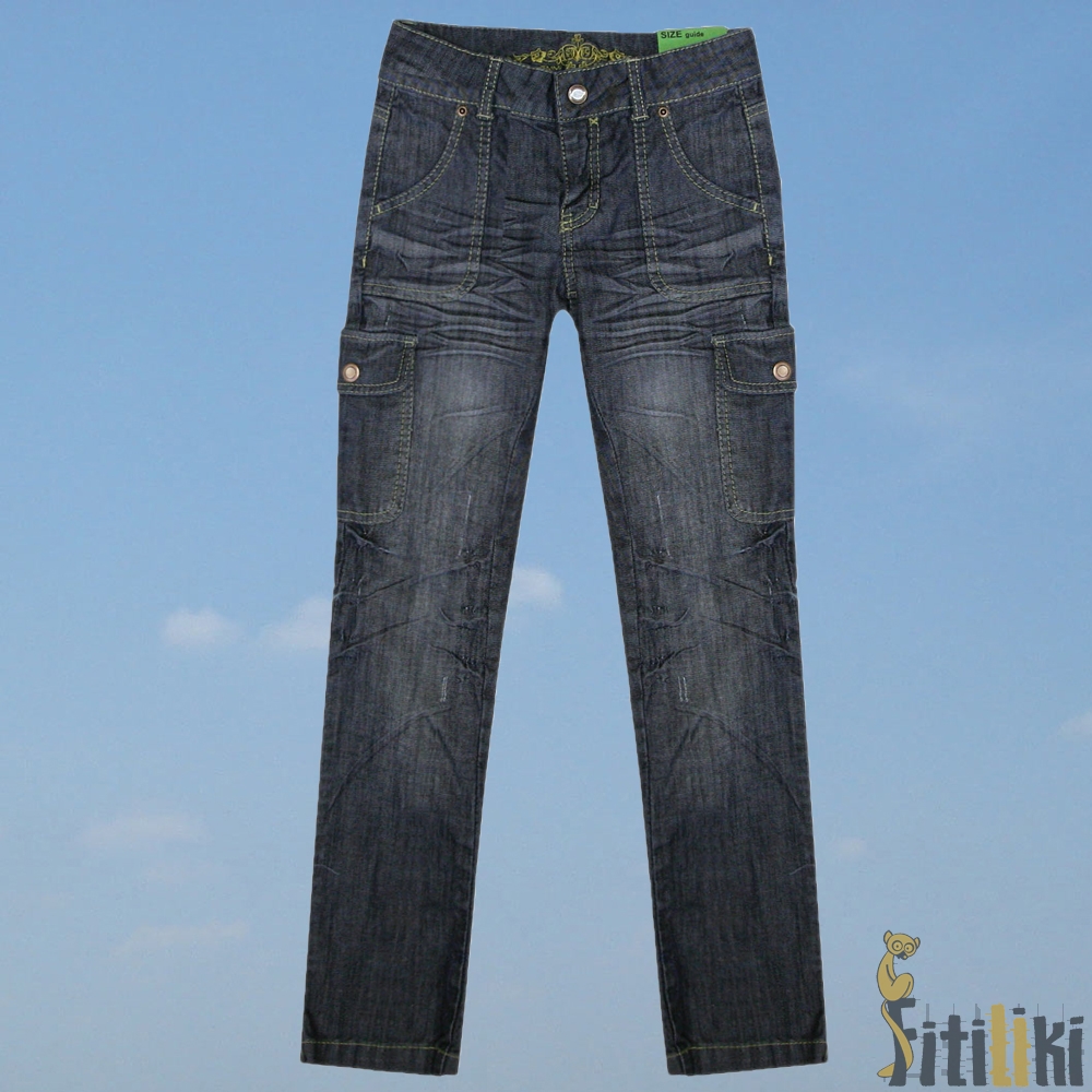 Описание: Джинсы для девочки с контрастной отстрочкой, потертостями и модными оригинальными замятостями по всей длине. Застегиваются на молнию и скобу (имитация пуговицы). Сзади два одинарных кармана с клапанами на кнопках, спереди - одинарный и двойной. Объем талии регулируется внутренней утягивающей резинкой с двух сторон. Модель узкого кроя (ROSI).