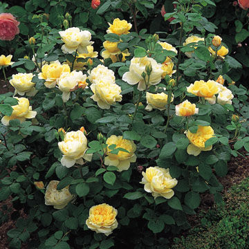 Цветки густомахровые, одни из самых крупных среди английских роз, в начале цветения в форме глубокой вазы. Они имеют великолепный цвет старого золота, иногда с лимонными или песчаными оттенками. Аромат прелестный, очень интенсивный, варьирует между чайным и цитрусовым. Кусты высотой 120 см и шириной 100 см, зимостойкие. Листва очень устойчива к заболеваниям. Всё в этой розе эффектно, великолепно и бросается в глаза: и пышность куста, и прекрасные цветки на концах длинных побегов. Очень хорошо цветёт повторно.