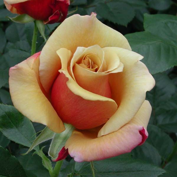 Цветки необычной для чайно-гибридных роз окраски, весьма отличающейся от других сортов. Окраска очень любопытная - внешняя сторона лепестков цвета тёмного нектарина, который контрастирует с восхитительно лёгким золотисто-бронзовым оттенком с внутренней стороны. Удлинённые бутоны раскрываются в большие отлично сформированные цветки. Аромат хороший (6 из 10 баллов). Цветение раннее, повторное, изобильное. Куст энергично растущий, высотой 85 см. Устойчивость к болезням хорошая.