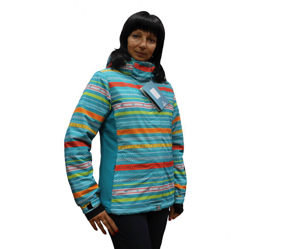 Женская горнолыжная куртка,мембранная ткань, утеплитель синтепон, отделками фирменными аксессуарами, куртка имеет съемный капюшон, скользящие молнии, трикотажные манжеты внутри рукава. Снегозащитная юбка.Яркая и очень стильная.