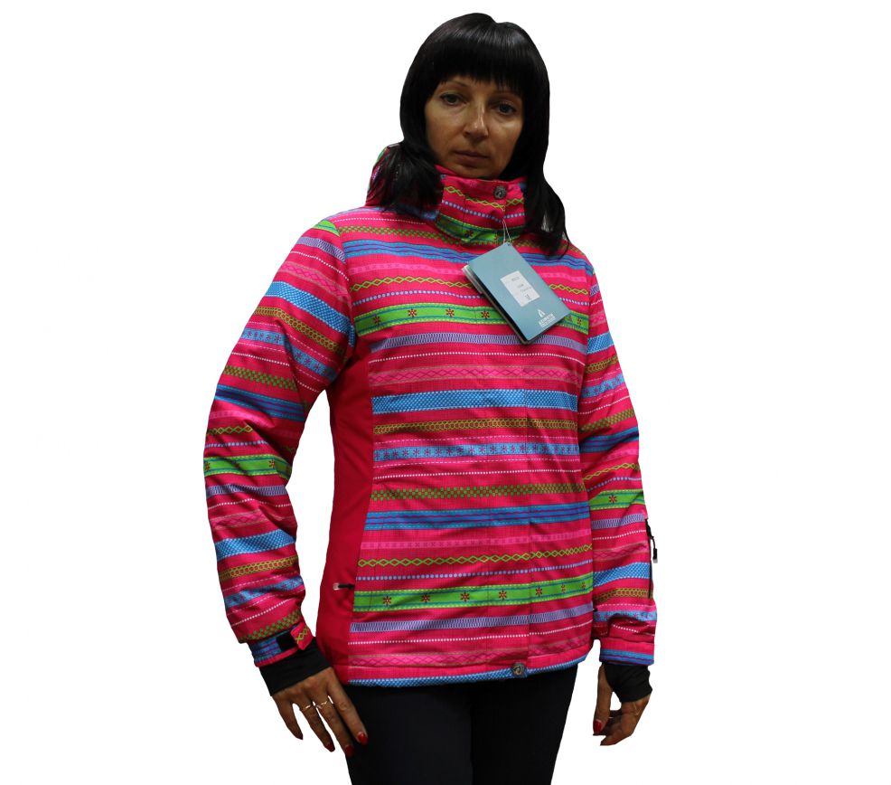 Женская горнолыжная куртка,мембранная ткань, утеплитель синтепон, отделками фирменными аксессуарами, куртка имеет съемный капюшон, скользящие молнии, трикотажные манжеты внутри рукава. Снегозащитная юбка.Яркая и очень стильная.