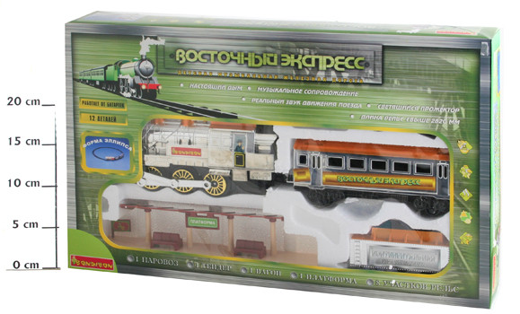 Ж/Д Восточный экспресс Бондибон в наборе BOX муз. 12 pcs,озвуч., подсветка, дым, серебр. локомот