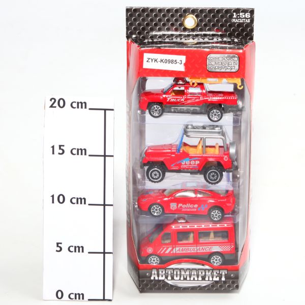 Набор 4 машины "Автомаркет", мет. с пластиком, BOX 13x5.5x28.5см,арт.ZYK-K0985-3.