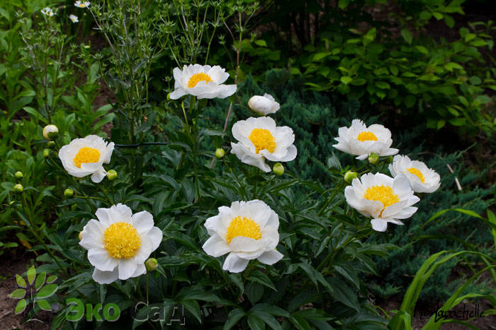Японский. Цветок диаметром 17 см, плоский, белый с зеленовато-кремовым оттенком, с жёлтым центром из многочисленных стаминодий. Высота 100 см. Стебли длинные, слегка изгибаются. Цветёт обильно и продолжительно, в средне-поздние сроки. Очень хорош в срезке.