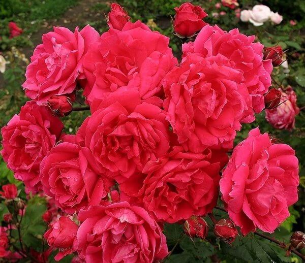 Куст прямостоячий, с изящно поникающими концами побегов. Удлиннные темно-клубнично-красные бутоны, в форме тюльпанов, раскрываются в цветки классической формы с отгибающимися вниз лепестками. Лепестки постепенно выгорают до темного теплого розового цвета. Легко пахнет свежей клубникой. Цветет волнами. После дождей внешние лепестки могут буреть и засыхать. Несмотря на это, одна из самых благодарных роз. Сорт очень устойчив к заболеваниям