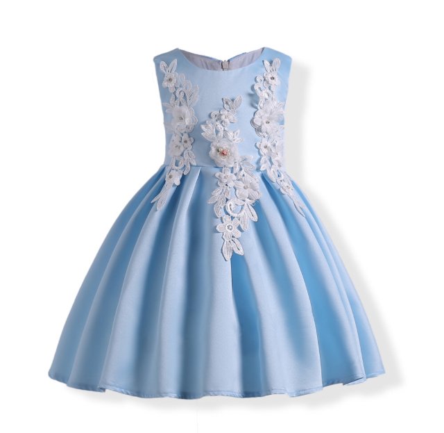 НАРЯДНОЕ ПЛАТЬЕ ДЛЯ ДЕВОЧКИ. ОТРЕЗНОЕ ПО ТАЛИИ, УКРАШЕНО АППЛИКАЦИЕЙ ИЗ ДЕКОРАТИВНОГО ГИПЮРА, ЦВЕТОВ И СТРАЗ.СЗАДИ ЗАВЯЗЫВАЕТСЯ НА БАНТ. ХЛОПКОВАЯ ПОДКЛАДА. ТМ "TONG TONG MI"