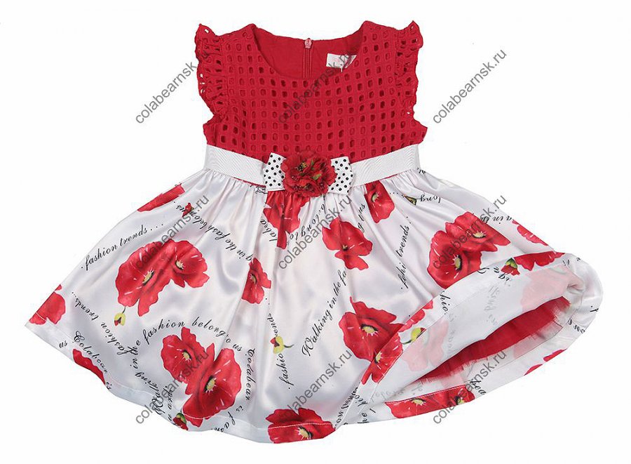 ПЛАТЬЕ ДЛЯ ДЕВОЧКИ, КОРОТКИЙ РУКАВ, КОКЕТКА ИЗ ХЛОПКОВОГО ШИТЬЯ, ПОЯС С БРОШЬЮ, НА ПОДКЛАДКЕ ВОЛАН ИЗ СЕТКИ. ТМ "COLABEAR".