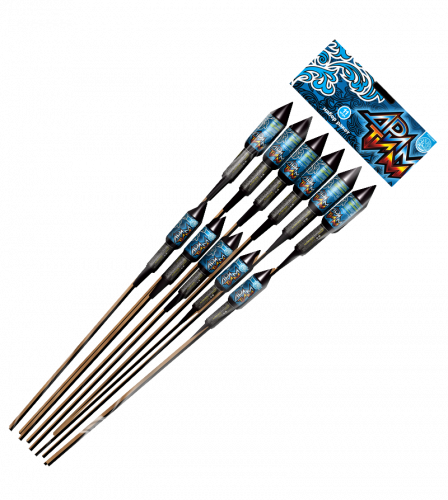 Набор из 11 ракет 4 разных типоразмеров: трещащие шары, пурпурно-зелёные пионы, красные и зелёные опадающие листья, зелёное мерцание. Высота подъема от 40 до 70 метров.