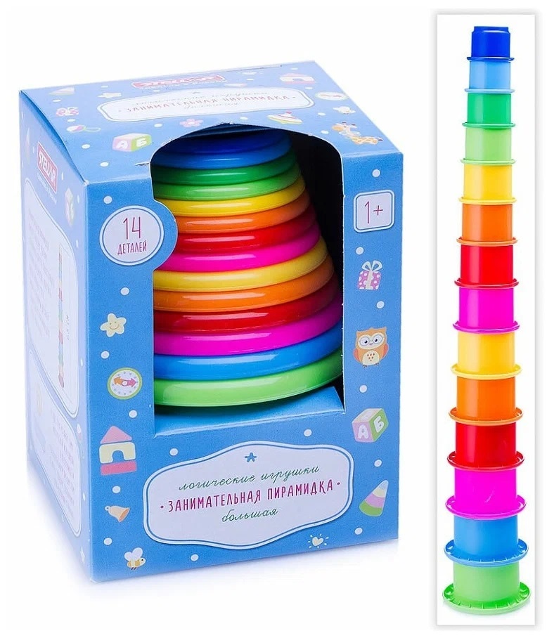 Для детей от 1 года. Формирует элементарные представления о математических понятиях: цвет, размер, последовательность, геометрические фигуры. Развивает мелкую моторику и зрительно-моторную координацию.