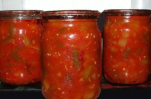 Томатный сок доводят до кипения+перец+лаврушка. Тем временем капусту, перец и зелень мелко шинкуем и высыпаем в кипящий томатный сок. Кипятим ~ 5 мин. Раскладываем по банкам, вверх дном и укутываем. Все!